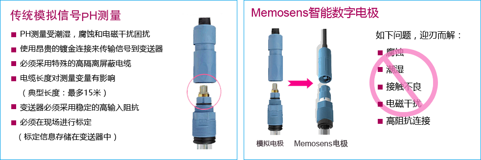 传统模拟电极与Memosens智能数字电极的对比图