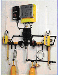 .取样流量低-0.2L/min .反应速度快, 精确控制氯投加量 .自动调零装置 .以RFI/EMC测试 .RS232通讯接口 .独特的安全系统-口令保护 .自清洗测量元件 Medway 2型余氯分析仪用来指示水中剩余 氯量。它设在投加系统的下游,通过中断信号监 测,控制投加系统。 Medway2用来控制可能的出现的加氯不足或 加氯过量:监测器配有四个手动可调报警器和一 个设备故障报警器。 Ponacel Buffer系统在一定的操作条件下,可 与Medway 2联合使用