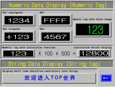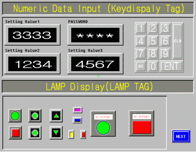 ■数据条目和控制登显示 ★ 关键标识符显示 ·数据显示范围限制 (Max.Min.Value Set) ·利用数字键输入数据 ·路径数据条目显示为星 ★ 控制登标签 ·通过控制灯标签控制机器和显示器的开关 ·通过数据串显示不同颜色的控制等