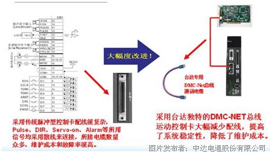 ⑴ 配线简单,独特的台达DMC-NET, 大大减少控制端配线,减少了系统的可靠性,降低了维护成本,如图4。