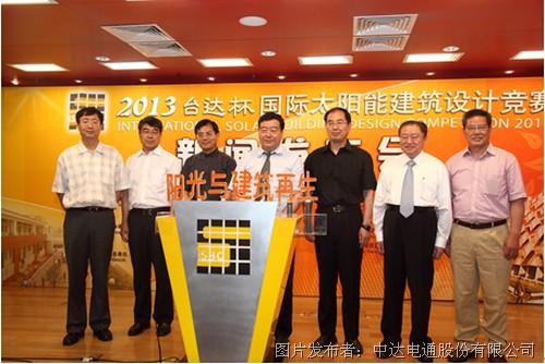 图为启动仪式现场,国务院参事、中国可再生能源学会理事长石定寰(右四)、台达环境与教育基金会董事长郑崇华(右二)、住房和城乡建设部建筑节能与科学技术司副司长韩爱兴(右三)、中国建筑设计研究院总院党委书记刘燕辉(左一)、中国可再生能源学会秘书长李宝山(左二)、中德公共建筑(中小学校和医院)节能项目办公室主任张社蚕(右一)、中国可再生能源学会太阳能建筑专业委员会主任委员仲继寿(左三),一同点亮了象征阳光与建筑再生的竞赛主题 启动仪式上,国务院参事、中国可再生能源学会理事长石定寰;素有台湾“环保教父”之称的台达环境与教育基金会董事长郑崇华;住房和城乡建设部建筑节能与科学技术司副司长韩爱兴;中国建筑设计研究院(集团)院长修龙;中国建筑设计研究院总院党委书记刘燕辉;中国可再生能源学会秘书长李宝山;中德公共建筑(中小学校和医院)节能项目办公室主任张社蚕;及中国可再生能源学会太阳能建筑专业委员会主任委员仲继寿先生等嘉宾,共同点亮了象征阳光与建筑再生的竞赛主题。