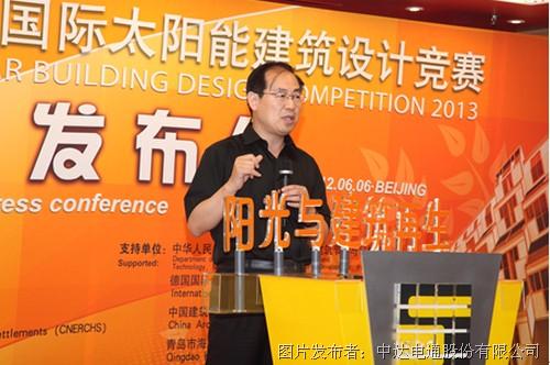 图为中国可再生能源学会理事长石定寰致辞 中国可再生能源学会理事长石定寰表示,他要特别感谢台达基金会连续四届冠名支持,让太阳能建筑设计竞赛形成了一个品牌,引领中国的太阳能建筑发展潮流。他指出,未来将让竞赛的影响力进一步扩大,并通过赛事发现人才、培养人才。 “国际太阳能建筑设计竞赛”至今举办过五届,2009年竞赛的一等奖获奖方案,已由中国建筑设计研究院完善为施工设计图,运用台达集团于汶川大地震后捐赠的1000万元人民币,协助绵阳“杨家镇小学”进行灾后重建,并于2011年落成启用。2011年竞赛的一等奖作品“垂直村落”计划由台达出资,在苏州同里湖畔实地建设,兼具科技创意和环保理念的设计方案将变成真正可居住的低碳住宅,成为又一个可供观摩、检验的绿建筑实体。 “2013台达杯国际太阳能建筑设计竞赛”由国际太阳能学会、中国可再生能源学会主办,国家住宅与居住环境工程技术研究中心、中国可再生能源学会太阳能建筑专业委员会承办,台达环境与教育基金会独家冠名赞助。住房和城乡建设部建筑节能与科技司、德国国际合作机构(GIZ)、中国建筑设计研究院及青岛市海慈医院共同支持,以推广利用永不枯竭的太阳能等新能源,为人类未来美好、低碳、绿色的生活做出贡献。