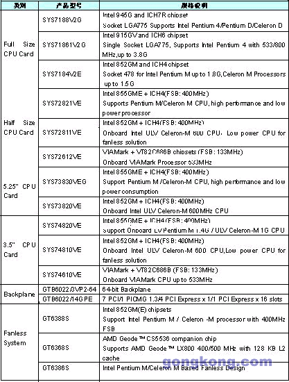 在潜心钻研数月之后,艾讯宏达近期即将推出多款工控新产品。产品系列涉及IPC和嵌入式的多个产品线。包括支持英特尔945G、915GV芯片的工控长卡,支持英特尔Pentium M/ Celeron M的低功耗嵌入式主板,以及无风扇系统等产品。这些新产品的推出能够更好的满足客户需求,适合行业发展的趋势。并且,这些新产品具有良好的性价比,具备市场优势。 附:主要新产品型号及说明: