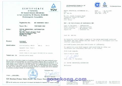 南京埃斯顿工业自动化有限公司是专门从事于运动控制产品开发,生产,销售的专业性公司。 本公司最新开发的EDA/EDB系列交流伺服驱动系统是完全拥有自主知识产权的高性能运动控制类产品。该产品的诞生打破了交流伺服系统长期以来几乎被进口产品一统天下的局面。  公司在专注国内市场的同时,始终关注着国际市场。2006年5月,我公司的EDB交流伺服驱动系统经过德国TUV莱茵认证有限公司各种严谨的测试,产品测试指标全部合格,顺利通过了CE 认证。CE认证的通过,标志着EDB伺服系统在质量、性能等各个方面都跃上了新的台阶。CE认证的取得,对EDB伺服系统继续扩大国际市场提供了有力保障。并且,对国内市场同样提供CE标准的产品,使国内用户用国内的市场价格享受国际水平的产品。