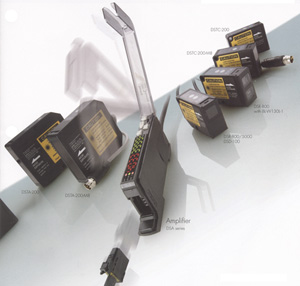 放大器: 1、三种检测模式:色标检测模式、透明体检 测模式、测长模式,各种功能按键选择; 2、数字显示,操作可视化,设定简单。 3、分为:高机能型和标准型 检测头: 1、同轴回归反射型:DSR-800 检出距离:8m 2、同轴漫反射型: DSD-100 检出距离:1m 3、同轴对射型: DSTC-200 检出距离:2m 4、对射/测长型: DSTA-200 检出距离:2m |