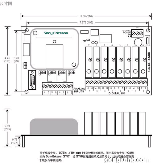 描述 OPTO 22的Opto GSM I/O 集成了标准的GSM/GPRS 移动网络和Opto22 输入、输出( I/O )技术, 为远程监控提供了一个低成本的、灵活的解决方案。 作为Opto22 M2M 系列产品之一,Opto GSM I/O 是现场具有12个传感器之内的监控系统的理想选择。 其监控类型主要包括: • 温度和压力 • 门,风扇,灯,泵和电机 • 设备的电压和电流 除了实时监控以外,简单的开/关控制也可以远程实现,或者,当预定事件发生时,开关会自动的被触发。 OptoGSM 包括以下组成部分: • Opto 22 G4-SE-4A8D 输入/输出底板 ――配合Sony Ericsson 远程通信单元,可以支持最多8个交流或直流G4数字输入、 输出模块。需要24VDC 电源。 • Sony Ericsson GT47 或 GT48 远程通信单元――900/1800 MHz (GT47) 或850/1900MHz (GT48) GSM 网络通信。 • 模块都可以配置电流,电压或者ICTD信号。 • Opto 22 G4 数字量输入 / 输出模块――同G4-SE-4A8D 底板兼容的数字量I/O 模块可以获取多种的信号类型。 工业标准的OPTO 22 G4 数字量模块是可以拔插的,世界范围内都有。SonyEricsson 远程通信单元和Opto 22 G4 I/O 模块可以脱离于SE-4A8D 无线底板而单独购买。  描述(cont.) 数字量输入或输出Opto GSM I/O 有四个内置的,单点的模拟量输入并支持多达8个数字量输入或输出。(数字量输入和输出模块可以被安装到同一个底板上)。 每一个模拟量输入有± 25,000 个技术分辨率,可以配置- 20 mA 到+20 mA , - 10 VDC 到+10VDC , ICTD输入,并且支持报警连锁。 数字量输入和输出由Opto22 G4 交流或直流数字量输入/输出模块(仅5V逻辑)组成。根据您的需要,可以单独购买。Opto 22 G4 数字输入/输出模块具有光电隔离功能,可以提供4000V 的瞬时保护。OptoGSM 输入、输出模块一起使用的数字量输入模块支持报警连锁。 Opto 22 G4 数字模块终身保用,从世界任何分销商那里都可以购买。关于G4 输入输出模块的具体规格及详细描述,请登陆我们的网站www.opto22.com . GSM网络通信 安装了一个Sony Ericsson GT47 或GT48远程通信单元和一个具有无线载波服务的SIM卡以后,OptoGSM I/O 在标准的GSM/GPRS 网络上,就可以实现TCP/UDP 和SMS通信了。 Sony Ericsson GT48 远程通信单元最初被应用于美国GSM网络上,可以从Opto22 公司获取。Sony Ericsson GT47 通信单元适用于900/1800 MHz GSM网络,它必须从当地的SonyEricsson 代理商那里购买。  描述(cont.) 可编程的远程通信单元OptoGSM I/O 使用Sony Ericsson 远程通信单元和Opto 可编程的脚本引擎,可以为一系列广泛的应用提供I/O 级别智能和控制。对远程通信单元 进行编程需要OptoGSM I/O 开发包,具体信息请参考Opto22 form1510 . OptoGSM I/O 和Nvio. Starter Kit OptoGSM I/O 各组成部分被应用于Nvio Starter Kit 中,它集成了所有的需要监控和控制的因素,所以,你可以快速的评估或执行M2M 的一个应用. 此方案将设备界面和无线通信硬件(OptoGSM I/O 底板G4 数字I/O 和Sony Ericsson GT48远程通信单元)及无线设备,数据日志,图形,基于事件的通信能力-建立远程M2M 应用所需要的所有的因素连接到一起。具体信息请参考Opto22 form 1504 。  |