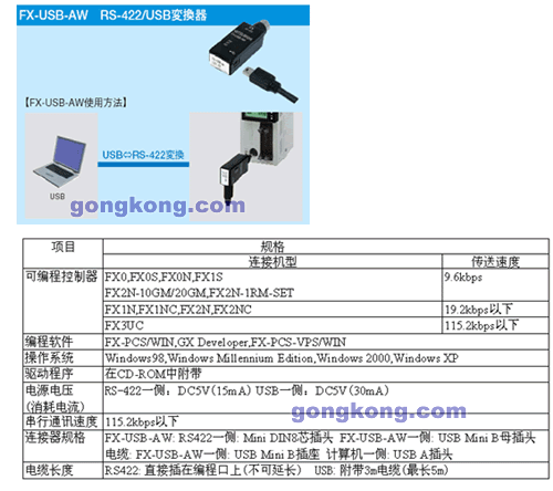 三菱电机最新推出FX系列PLC用新型USB编程电缆(FX-USB-AW),可以直接通过计算机的USB口对FX系列PLC进行编程,省却了以往使用USB/RS232转换器+SC-09组合的麻烦。