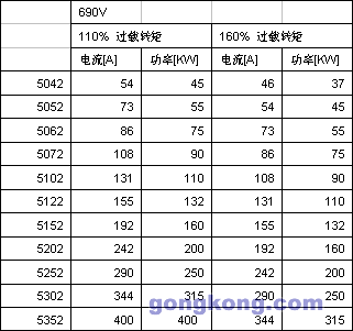 丹佛斯的690V系列变频器电流和功率范围为: VLT5000 - 525-690V