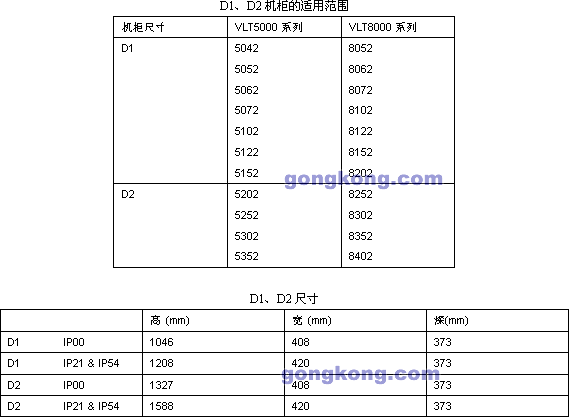独特卖点 丹佛斯690V系列变频器的独特卖点为: · 小尺寸。 · IP00, IP21和IP54防护等级。 · 可提供多种可选件。 · 高效率使变频器产生的热量更小。 · 标准的RFI滤波器A2。 · IP00变频器可以很容易地安装在带有预装通风冷却系统的Rittal TS8机柜内。 技术描述 我们的690V系列变频器现在可以为用户提供更多的产品特性: · 新的硬件可选件。 § 熔断短路保护和断路可选件。 § 24V直流电源可选件。 · 优化的产品设计使变频器的冷却效率得到了极大的改善 – 效率提高到98%。 · 690V市场上尺寸最小的变频器 – 丹佛斯的IP54防护等级变频器是690V市场上同类产品中尺寸最小的变频器, 同时因为机柜内还可以增加可选件例如RFI滤波器和断路/熔断短路保护,这样使得丹佛斯IP54防护等级的变频器尺寸优势更加明显。 · 基于用户的实际需求,产品的设计使安装更简易方便。 · 优秀的设计保证了变频器不易损坏。 · RFI滤波表现 - 带有最长150米的屏蔽电机电缆。 · 所有变频器(电路板)出厂时都带有涂层。 丹佛斯的690V系列变频器有两种规格的机柜。D1为尺寸较小的机柜,D2为尺寸较大的机柜。它们的适用范围和具体尺寸请参考下表: