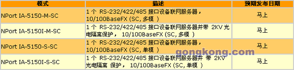 | 即将上市: MOXA光纤接口的NPort IA 工业级设备联网服务器 |